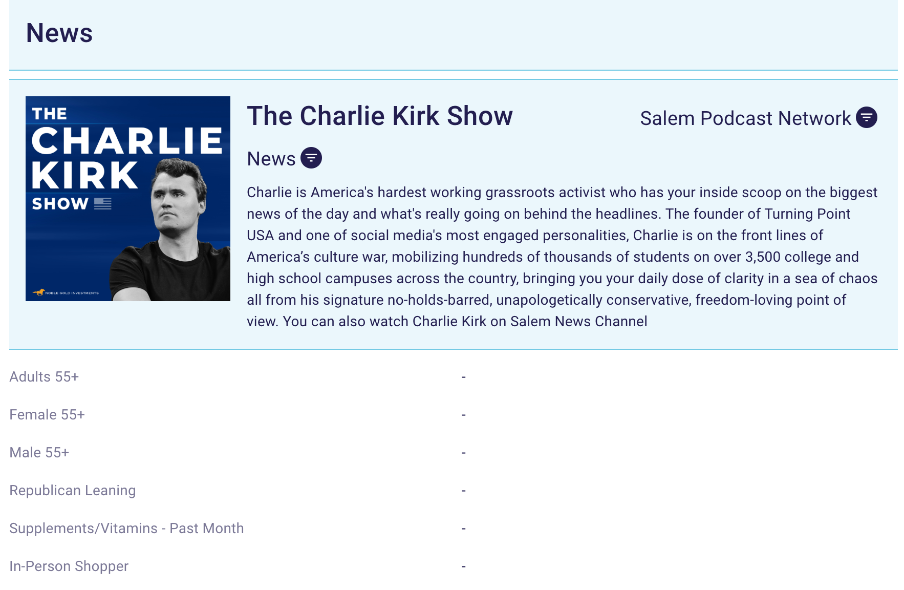 Kirk’s podcast audience actually skewed older.